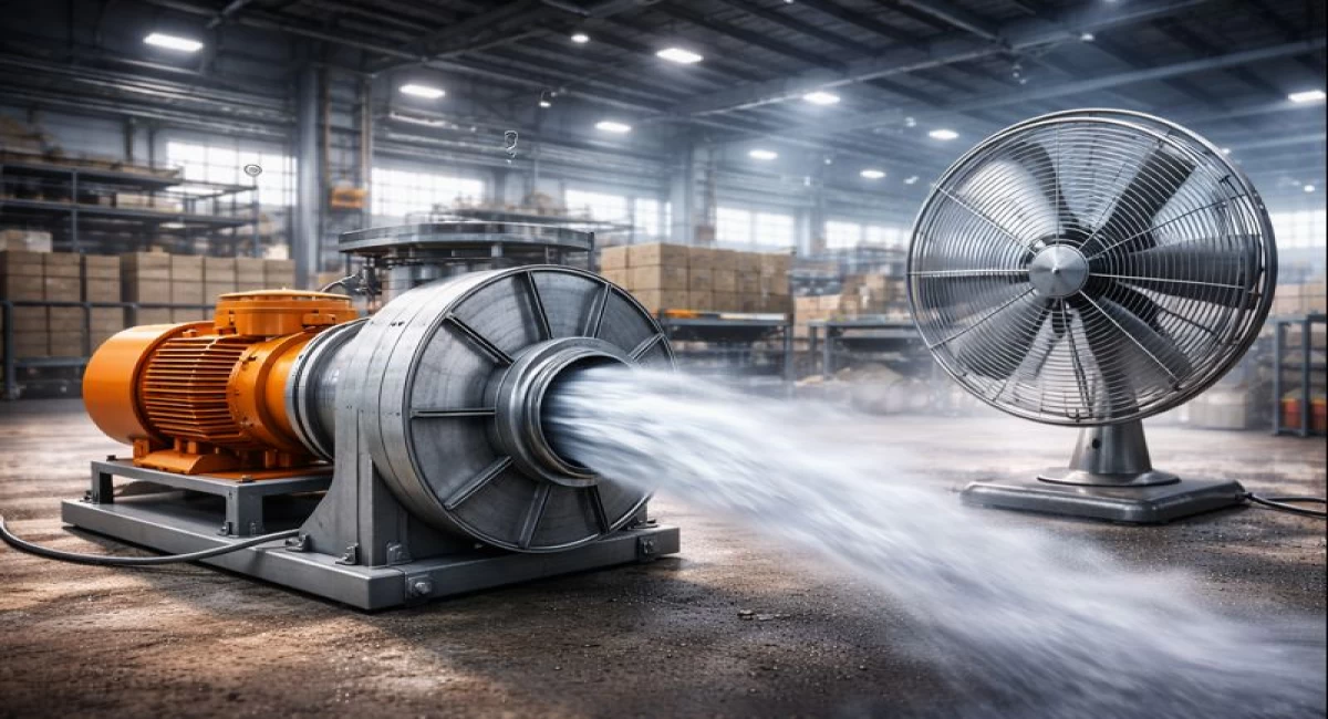 Large industrial spaces need strong airflow to manage heat dust and fumes. A small fan can only move air close to its position. An industrial air blower pushes much more air across wide areas. This helps move stale air out and bring fresh air in faster.